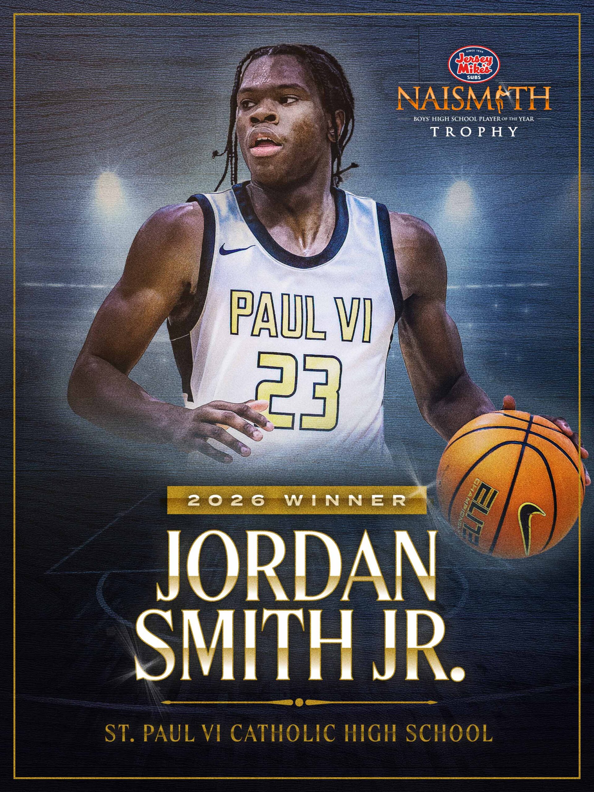 ATLANTA (March 17, 2026) – The Atlanta Tipoff Club announced today that Jordan Smith Jr. of St. Paul VI Catholic High School in Chantilly, Va., has been named the winner of the 2026 Jersey Mike’s Naismith Boys’ High School Player of the Year Trophy while his coach, Glenn Farello, has won the 2026 Jersey Mike’s Naismith Boys’ High School Coach of the Year Trophy.